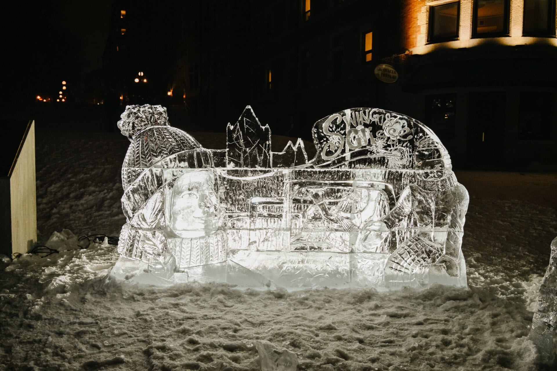 One of the things I loved the most was that around town there was an abundance of ice sculptures on display. I had the fortune of meeting with one of the sculpturists while she was busy carving away with her chainsaw. In between her work, she took the time to explain the theme for the year (winter sports) and showed us some of the techniques that she used to make her special carvings. If you’re around town be sure to be on the lookout for all sorts of ice sculptures and for fun, see if you can count them all!